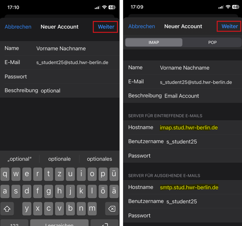 imap.stud.hwr-berlin.de - Outgoing Mail Server: