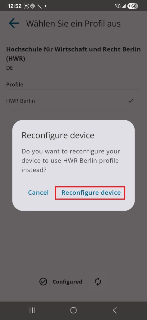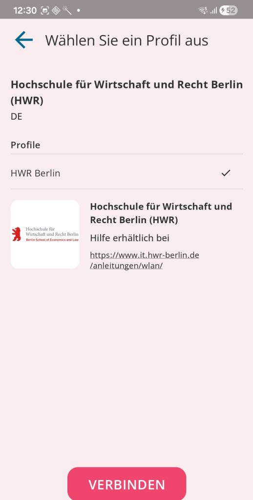 The Wi-Fi connection at HWR Berlin is provided via the Education Roaming (eduroam) service of the Deutsches Forschungs Netz (DFN). To install eduroam on your Android Device, your login details must be linked to the certificate.
