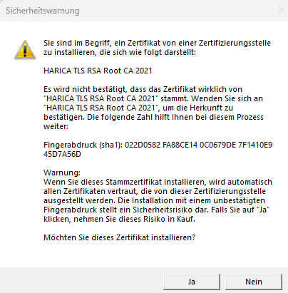 Bestätigen Sie die Installation fehlender Stammzertifikate.