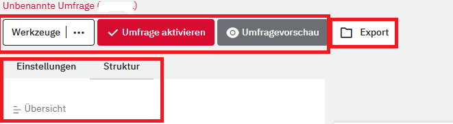- Unter Struktur wird der direkte Zugriffe zum strukturellen Aufbau Ihrer Umfrage ermöglicht.