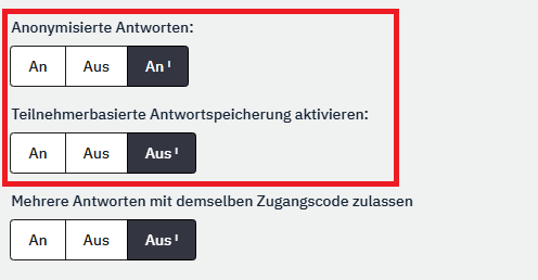 - Via Voreinstellung sind Anonymisierte Antworten ausgewählt. Wir empfehlen, die hier hinterlegten Einstellungen beizubehalten.